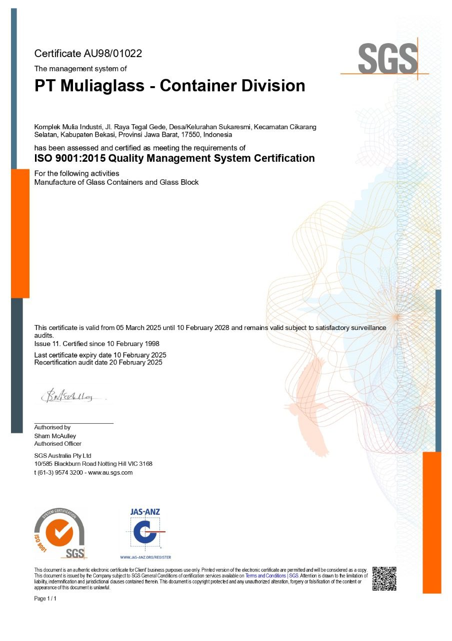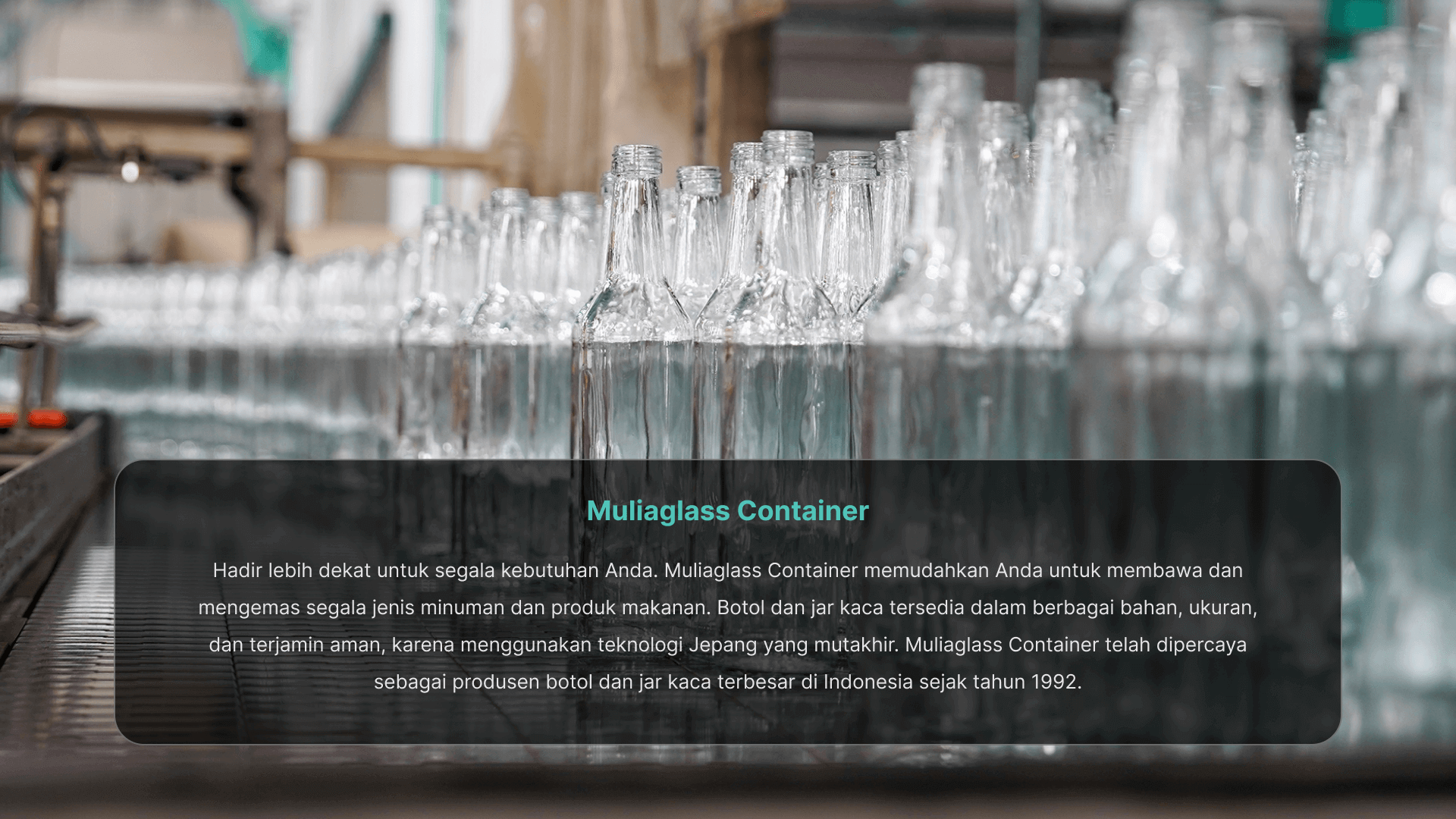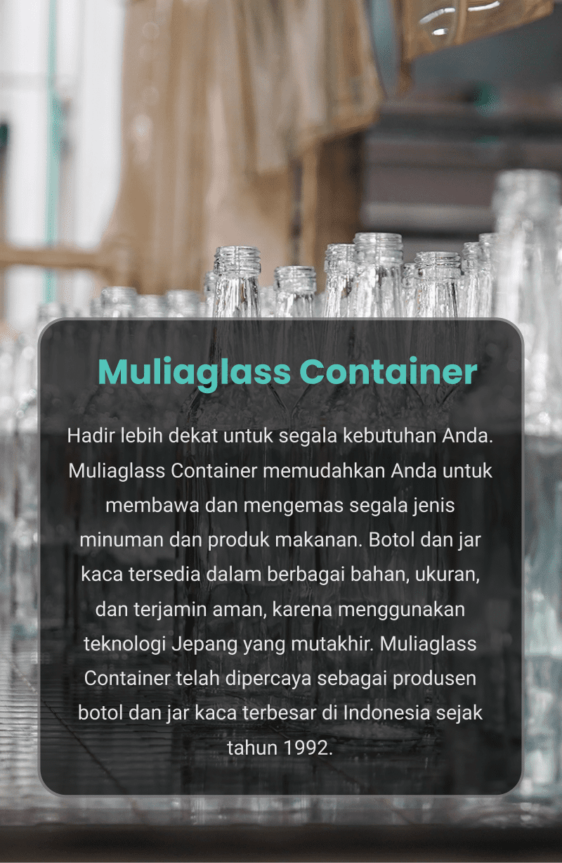 Glass Container Mulia – Kemasan kaca dan botol kaca Mulia merupakan pilihan glass container premium yang menawarkan berbagai keunggulan untuk botol kaca berkualitas tinggi. Terbuat dari kaca yang kokoh dan transparan, glass container Mulia memberikan tampilan elegan yang dapat meningkatkan daya tarik visual pada botol kaca, sekaligus memastikan perlindungan optimal terhadap isinya. Selain itu, glass container Mulia juga dikenal ramah lingkungan karena sifatnya yang dapat didaur ulang, mendukung upaya keberlanjutan dalam industri kemasan.